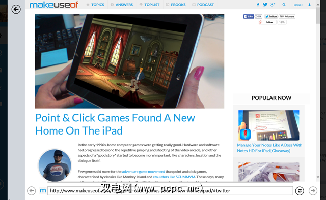 内置的浏览器是Windows 8上MetroTwit最好的功能之一。这使得从Twitter快速阅读文章并返回您的时间轴变得更加容易。默认情况下,此功能是启用的,我看不到为什么要禁用它,但是可以通过设置来禁用它。