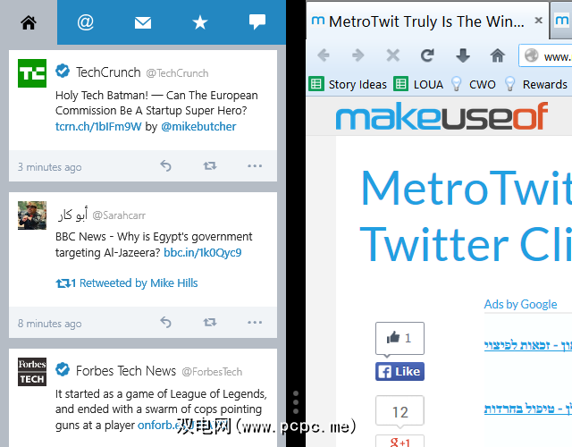 成为现代应用, MetroTwit支持桌面应用程序的并排视图,如果这是您的工作,它可以帮助您在工作中保持领先。