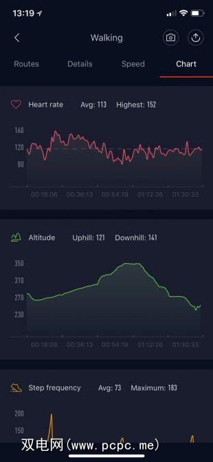 在极少数情况下,心率传感器可能会发生故障。如果频段紧紧,效果会更好。因此,如果该数据对您很重要,建议您在进行活动之前将其紧紧固定。通常,我发现它是可靠的,如从上图中可以看到的,只有几次传感器无法读数,可能是因为表带太松或缠绕在我的手臂上。