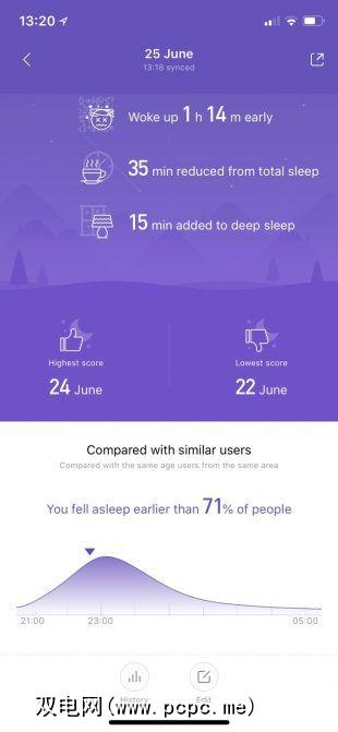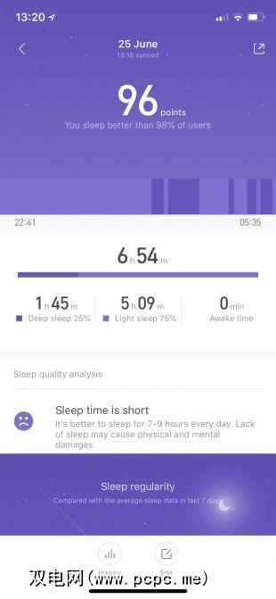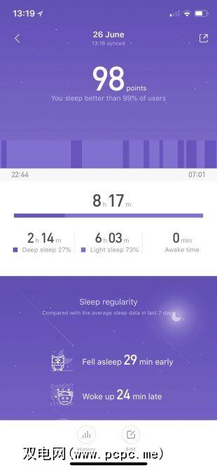 通过使用加速度计和心率传感器,睡眠追踪可以提供您总体的概况睡眠,并尝试对您享受的深度睡眠进行分类。同样,该数据到底有多可靠(尤其是睡眠分类)值得商bat。不过,睡眠和唤醒时间与现实相符,据小米称,我的睡眠水平通常比99%的人好。我倾向于同意。