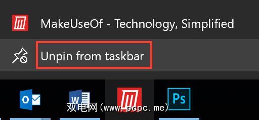如果要从任务栏中删除网站快捷方式,无论它是在Edge还是任何其他浏览器中创建的,只需右键单击即可并单击从任务栏取消固定。