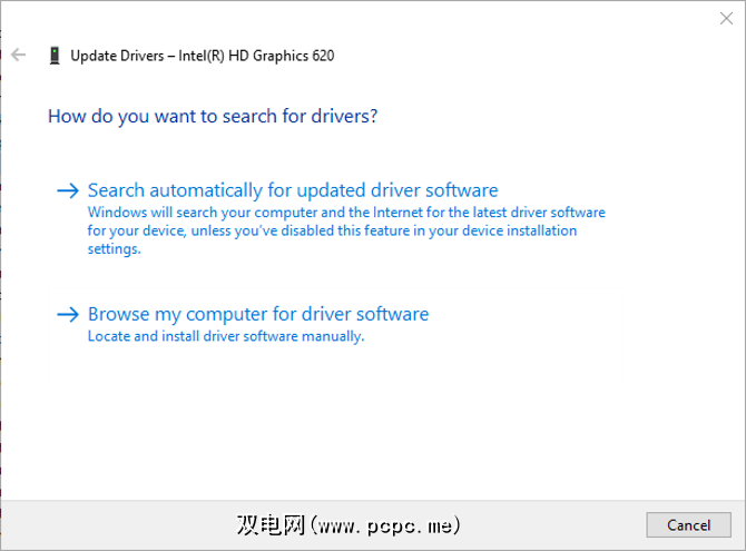 值得注意的是,仍然存在手动浏览PC来查找驱动程序的选项。您仍然可以通过Windows Update更新驱动程序。此更新仅阻止设备管理器使用Internet更新驱动程序。