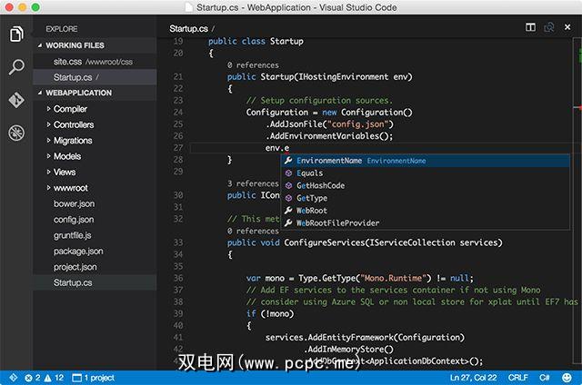 Visual Studio Code可为Windows,Linux和Mac OS X下载,这是Microsoft首次涉足全球。非Windows开发人员工具。有了它,开发人员可以使用node.js以及微软自己的ASP.Net框架来构建网站。它还允许开发人员为Azure构建应用程序。微软的云计算平台。