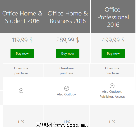最基本的版本(Office Home和学生版)与Word 2016,Excel 2016,PowerPoint 2016和OneNote 2016一起提供。它的价格为119.99美元,只能在家用计算机上使用。
