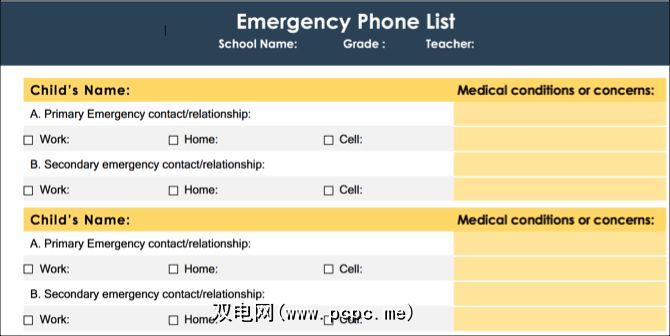 这是一个很棒的Microsoft Word模板,可将您的学生的紧急联系人保持在一起