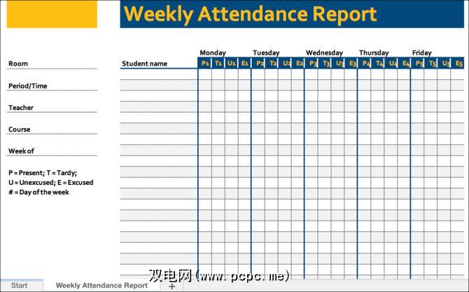 如果您喜欢每周出勤表,则此下一个模板是为了你。对于Excel,模板上有用于显示房间号,时段,老师,课程和每周的位置,供您弹出。