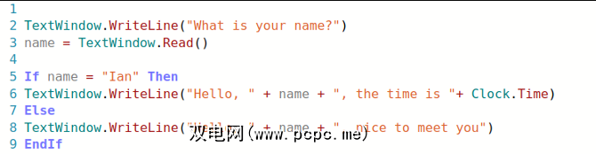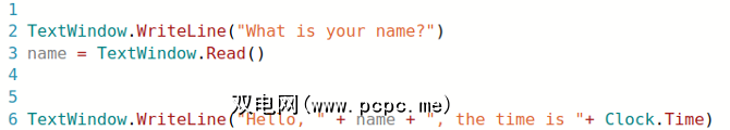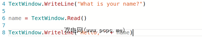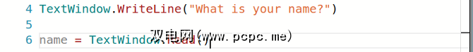然后,您告诉 TextWindow 来读取用户的内容输入。不要忘记括号,即使它们是空的,计算机也需要它们知道该怎么做!