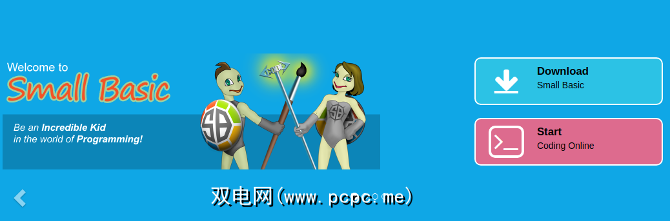 首先,请打开Web浏览器并导航至smallbasic.com。您应该会看到一个网站,中间有两个按钮: