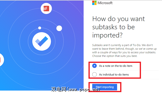 最后,您需要确定待办事项如何处理您拥有的所有子任务。准备就绪后,请单击开始导入。