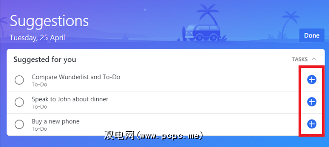 建议列表为“智能",这意味着它使用一种算法来分析重要性,到期日,即将到来的任务和其他数据来确定您应该在一天之内完成的工作。