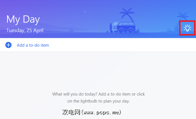 要使用此功能,请单击任务栏右上角的灯泡图标。 “我的一天"窗口。