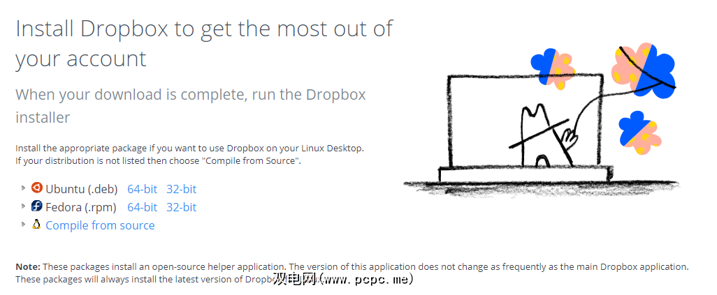要安装Dropbox,您需要首先下载适用于Linux版本的正确版本。前往dropbox.com/install-linux并下载适合您的Linux发行系列的版本。对于Debian,Ubuntu,Linux Mint等,请使用 .deb 链接;对于Fedora,Red Hat,openSUSE,PCLinuxOS等,请选择 .rpm 。