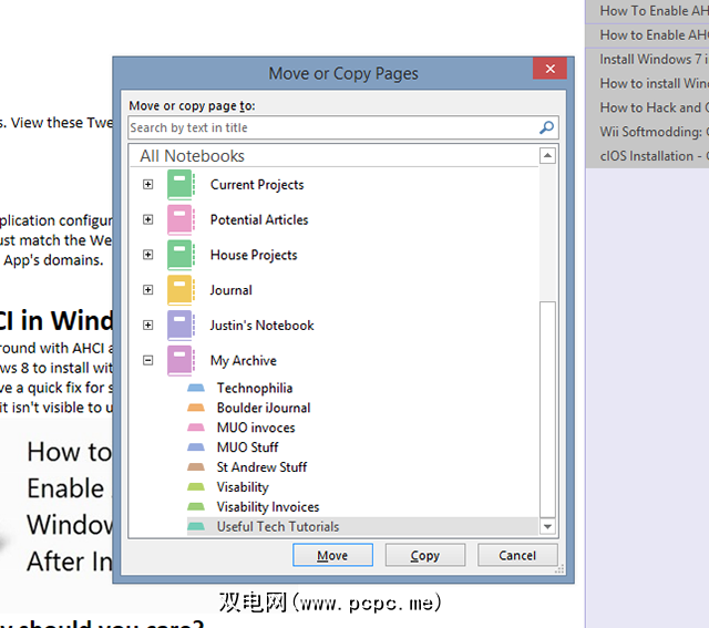您很有可能实际上不希望将迁移的笔记保存在默认部分中,但是移动它们非常简单。只需在任何OneNote笔记本中创建一个您希望他们居住的区域即可。完成后,选择您想要迁移的笔记(按住 Shift ,然后单击迁移中的第一个和最后一个笔记)。右键单击选定的笔记,然后单击移动或复制: