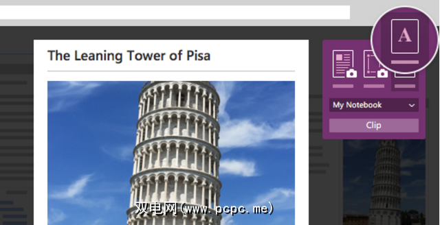 您可以剪辑整个页面,页面的一部分,或者仅剪切页面上的文章。您可以为每个剪辑编写一个便笺,但不能像使用Evernote的网络剪辑器那样对剪辑进行视觉注释。