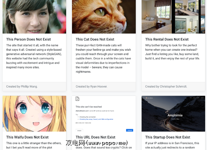 9 GAN并不是唯一的基于计算机的创建者。如今,互联网上最著名的基于GAN的网站是“此人不存在(TPDNE)",它从无到有地创建了真实的假人脸。网站。此X不存在将所有这些AI创建者放在一个位置。该集合包括AI生成的猫,工作履历,Airbnb列表,初创公司以及其他看上去绝对真实的虚构产品。