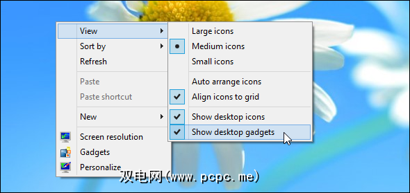 当您右键单击桌面时,您还将看到熟悉的小工具和显示桌面小工具选项,因此您可以关闭小工具然后将其取回容易。它的工作方式与以前的Windows版本一样,都支持小工具。