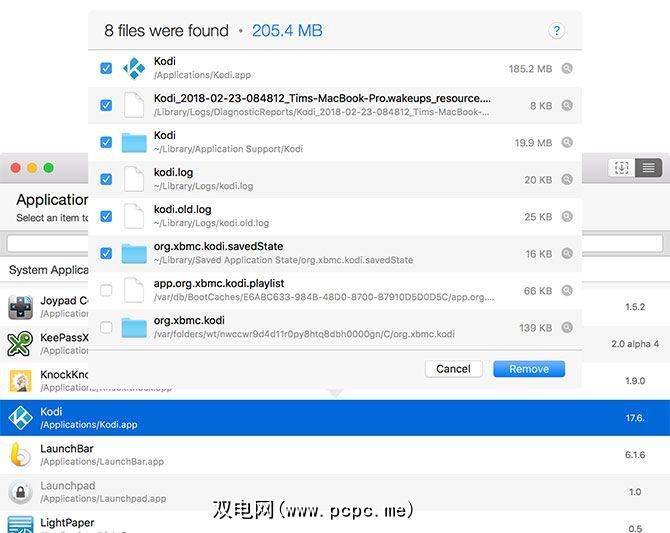 在删除任何内容之前,您可以确切看到要删除的内容,包括下的APP文件本身。 〜/ Library 文件夹中的应用程序和配置文件。如果要保留任何内容,只需先取消选中它即可。