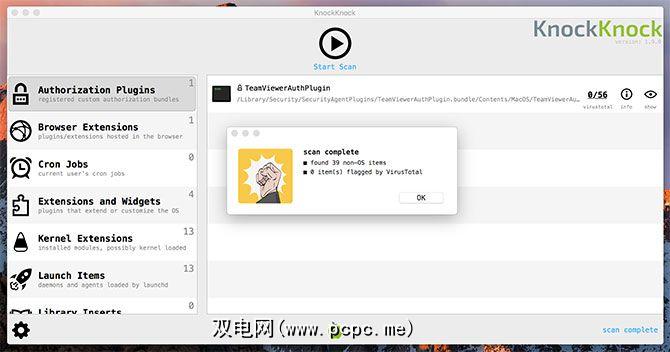 KnockKnock深入研究了登录时真正启动的内容,以及一些其他信息。其他潜在威胁,例如Safari插件和恶意内核扩展。 VirusTotal会检查它找到的所有进程,因此您可以确信Mac仍然没有恶意软件。