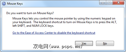 要启用鼠标键,请按左Alt键,左Shift键,和NumLock键同时显示。按Enter确认。