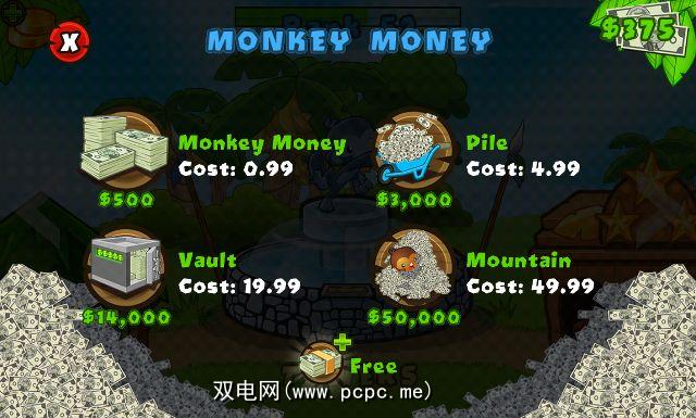 您可以赚钱通过完成关卡可以同时获得代币和猴子钱,并且每天第一次启动游戏时都会获得一些猴子钱。您还可以从游戏内商店购买代币和猴子钱。您可以从$ 0.99的价格购买一些猴子代币,或者一路攀升至$ 49.99的猴子币。到目前为止,我还没有在货币上花费任何钱,而且我的进步非常快。