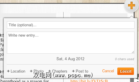 我今年早些时候写过关于如何我使用Twournal将近两年的推文出版成书。但是,使用Twournal的局限性之一是它仅发布Twitter内容,而该内容通常最终会成为大量文章标题和链接。有了Loccit,我现在可以将自己的推文与个人日记和日记条目合并,而不仅限于140个字符。这意味着我可以发布Twitter关注者不太关心的个人私人活动。