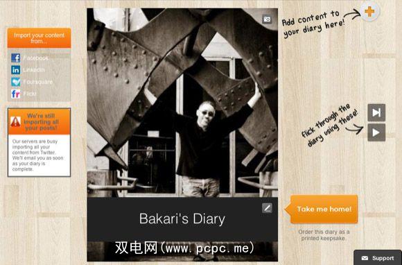 在Loccit网站格式中,您允许其导入的社交网络内容以书本格式显示,而不是只是一个线性条目列表。您也可以只使用Loccit而不导入您的社交网络内容。
