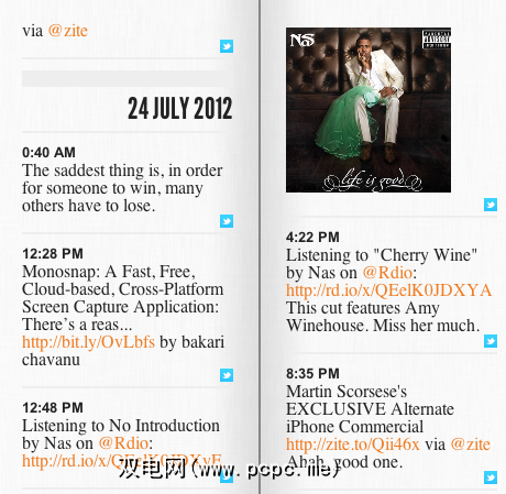 每组条目都标有它们出现的日期,以及每条帖子的发布时间。尽管可能有些烦人,但完整的URL链接也会张贴在条目中。当然,每个帖子的来源都用其图标标记。