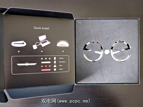 在泡沫隔板下是备用电池组,感应充电垫和USB电缆。
