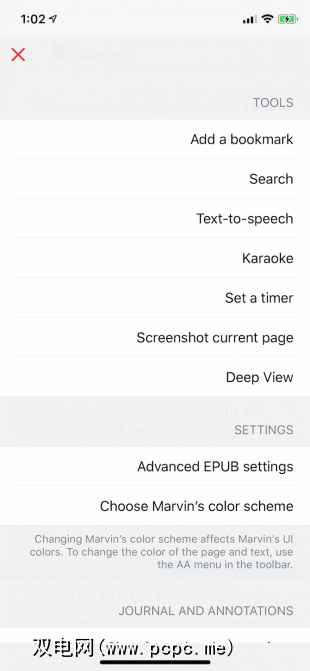 Marvin 3是iOS上最好的第三方EPUB阅读器。如果您对Apple Books或Kindle的基本功能不满意,请看一下Marvin3。该应用程序可让您自定义整个阅读界面。