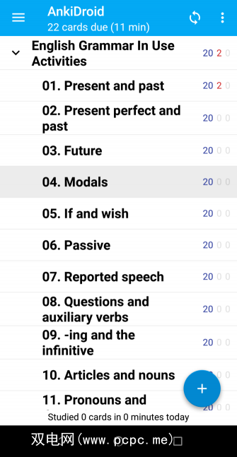 AnkiDroid是Anki的一个配套Android应用。点击蓝色加号按钮以创建新的抽认卡。卡片组列表是您启动应用程序时看到的屏幕。它显示您的牌组列表,其中包含您的所有抽认卡。要处理卡片组中的卡片,请点击学习按钮以切换到学习模式。在学习和查看材料时,该应用程序会将您的进度与桌面同步。