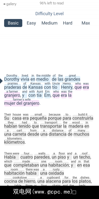 在阅读书籍时,请从基本到最大。在基本上,每个单词都将包含翻译,而在 Max 中则没有。观看视频时,您可以随着视频的进行进行聆听和阅读。您也可以点击单词以将其添加到抽认卡中,以供以后保存和查看。