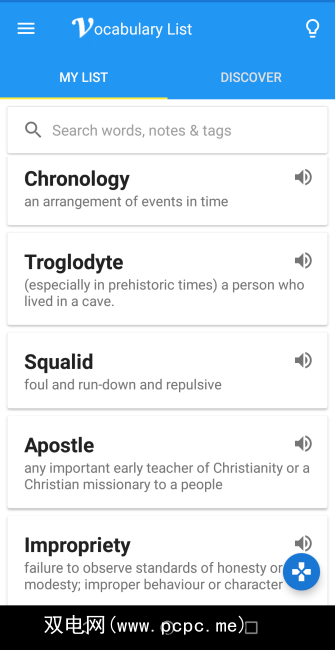 发现标签包括和困难的话。您可以将“发现"标签中的单词添加到列表中。在我的列表标签上开始填写单词后,您会看到定期通知以帮助您记住该单词。该应用程序还允许您通过快速文字游戏进行测验。如果您是狂热的书籍阅读者,那么此应用非常适合学习目标词汇。