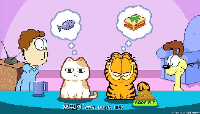 在Nom Cat中也有令人印象深刻的著名猫科动物名册,其中包括Garfield,