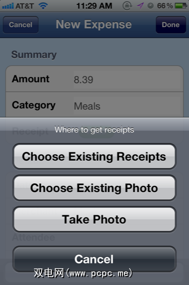 由于ExpenseCloud位于iPhone上,因此您可以使用内置相机拍摄收据的照片。 iPhone相机可以比某些扫描仪更好地捕获文档,并且只需稍作练习,就可以不到30秒的时间拍摄一张收据并将其存储在iPhone中。您可以使用ExpenseCloud中绿色的“添加"按钮激活相机或在图书馆中添加收据的现有照片。