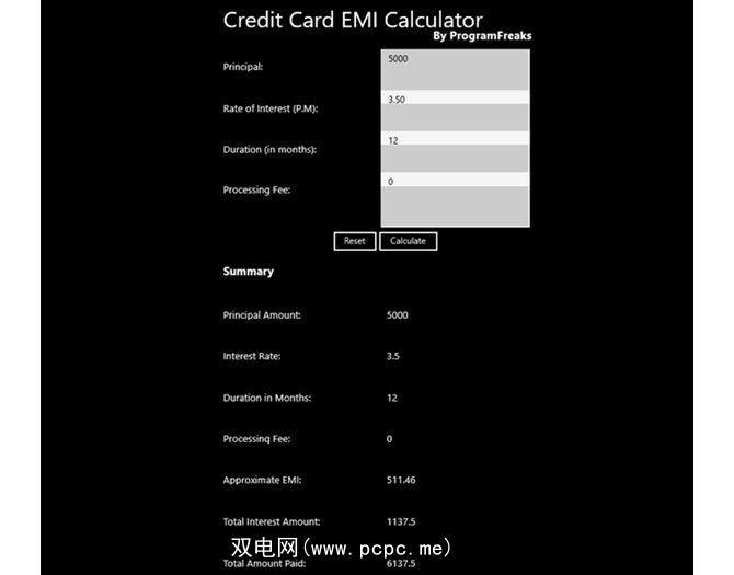 信用卡EMI计算器可以在您清还债务时为您提供全面的了解。它也适用于信用卡,个人贷款和汽车贷款。输入本金,利率,期限(以月为单位)和适用的手续费。