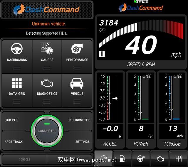也许高级应用程序是DashCommand,该应用程序附带30分钟的OBD2连接的有限试用版,然后用尽并强迫您购买完整的9.99美元产品。这种向上销售的方法在某种程度上是不必要的-您可能会同意-但DashCommand确实物有所值,它具有醒目的汽车仪表板和燃油性能的图形表示以及可进行维修的诊断信息。
