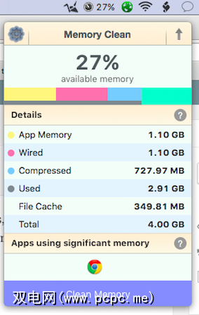 活动监视器在内存下具有类似的用途strong>选项卡,但Memory Clean提供了更漂亮的界面和快速的菜单栏访问权限,因此值得我们下载。