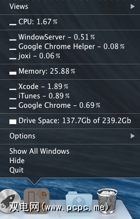 我真的很喜欢这个,4.99美元并不是那么合理。 Stater作为图标和菜单坐在您的扩展坞中。您只需根据要查看的内容单击图标。您可以从组合和多核CPU使用率,内存使用率和驱动器空间中进行选择。您可以关闭不需要的任何东西,甚至可以使用六种配色方案来匹配您的桌面。