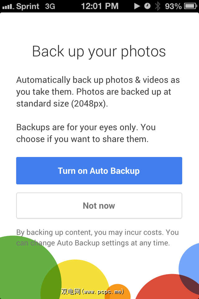 首次登录Google+应用时,它会问的第一个问题是您是否要开启自动备份功能。此功能使您可以将所有移动照片自动保存到Google+帐户中的云中。