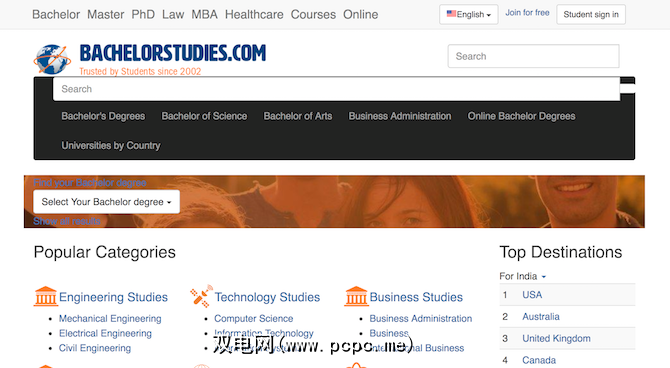 该网站会根据您对国家/地区,语言,费用,兼职或全日制的偏爱,为您找到学士学位课程或学位。它还提供了在您的祖国学习的主要目的地的列表。如果您创建帐户并在感兴趣的列表中添加大学,它还会从您身边查询有关该课程的详细信息。