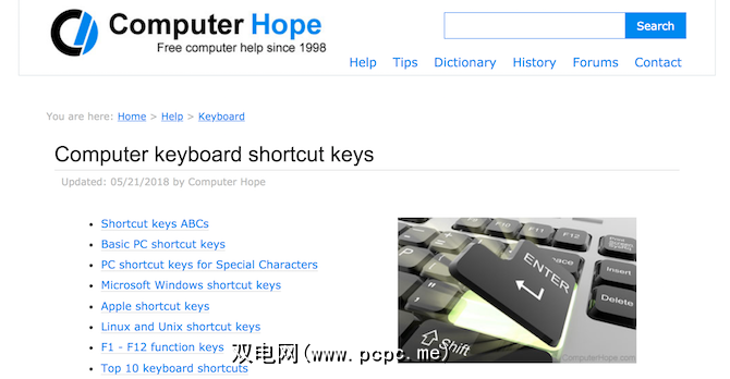 键盘快捷键可以大大提高您的工作效率。 Computer Hope教授基本的快捷键,并列出普通计算机用户使用的各种软件的快捷键。