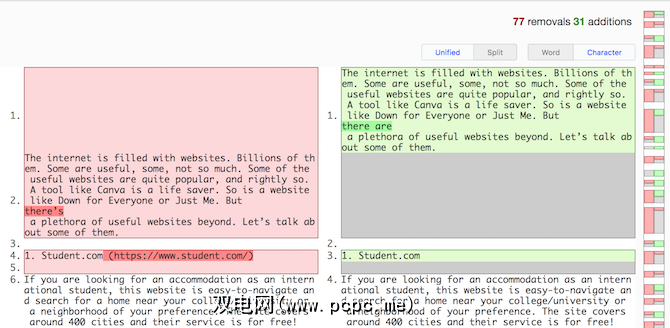 一种完美的方法来查找您的文档是否已被其他人更改。它使您可以找到两段文字之间的差异并进行比较。刚刚从您的编辑器那里得到了更新的文章?使用Diff Checker来找出您的编辑器所做的更改。