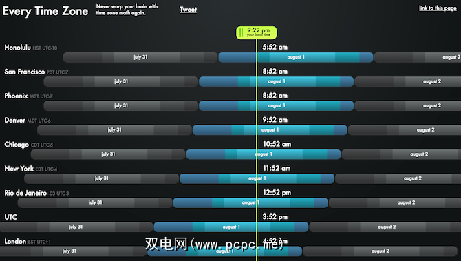 在大多数情况下,计算不同的时区可能会让人头疼。参照您的网站,该网站对世界时区的看法不那么混乱。