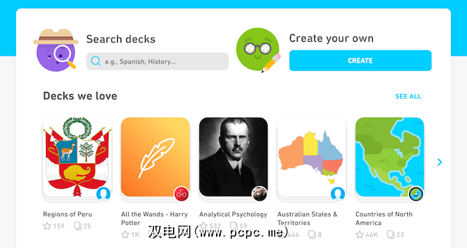 抽认卡使学习更加轻松,尤其是在语言方面。 Duolingo的这个有趣的网站是一个简单的版本,可以使用抽认卡记住单词,并允许您使用文字或图片在所选主题上创建自己的卡片组!