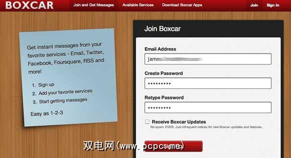 转到boxcar.io,并为自己设置免费帐户。 Boxcar基本上是我们之前向您展示的免费的全部通知服务,但我仅将其用于Growl功能。