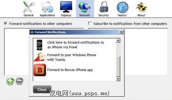 然后激活通知程序,打开 Growl for Windows 应用程序,然后转到网络。检查将通知转发给其他设备,然后单击绿色的 +按钮。您应该会在底部看到 BoxCar (不要选择iPhone,因为它是为名为Prowl的付费应用程序设计的。)