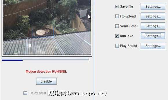 返回到运动检测屏幕。在操作列表上,启用 Run .exe 选项并编辑设置。我们要运行的命令是: