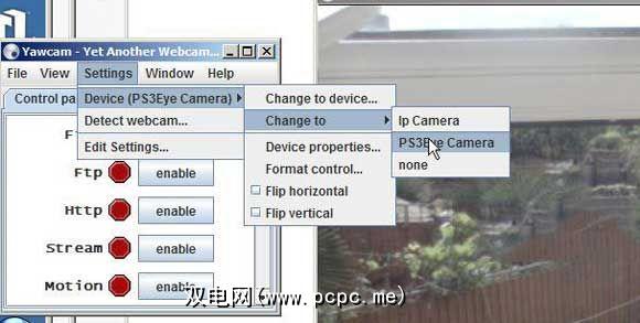 如果您尝试使用PS3Eye像我一样,您需要从这里安装CLEye驱动程序,然后才能在Windows中使用相机。在尝试安装Yawcam之前,您还需要从Java.com下载JRE。