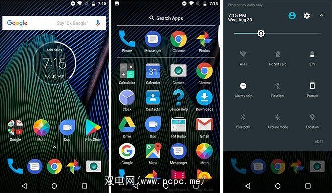 默认启动器是Moto专用的一个叫做Launcher3。就像Google Now Launcher一样,您可以向左滑动以查看包含与您相关的信息的Google卡流。