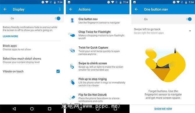 Moto Actions有更多选项。一键导航是我们之前讨论的内容-您可以仅使用指纹传感器进行导航。您还可以砍两次以打开手电筒,两次砍腕以打开相机,以及其他一些动作。